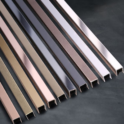 شريط تقليم ذهبي اللون من الفولاذ المقاوم للصدأ على شكل حرف U للجدار و Ceilling