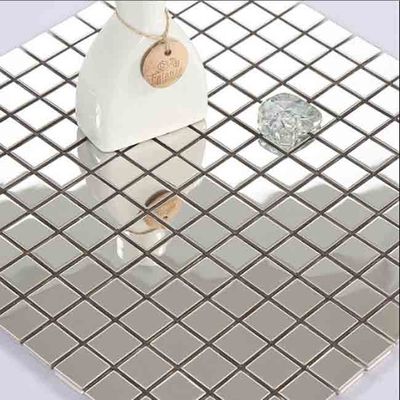 مستطيل فضي اللون الفولاذ المقاوم للصدأ بلاط الموزاييك لتزيين الجدران
