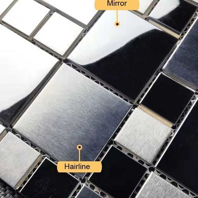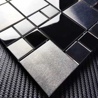 بلاط الفسيفساء الفسيفساء الفولاذي المقاوم للصدأ باللون الأسود الرمادي المربع لتزيين الجدران
