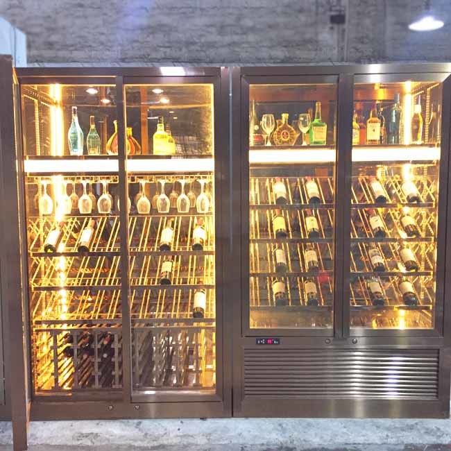 ASTM certified stainless steel wine cabinet,mirror brushed black gold wine cabinet,hotel stainless steel wine storage