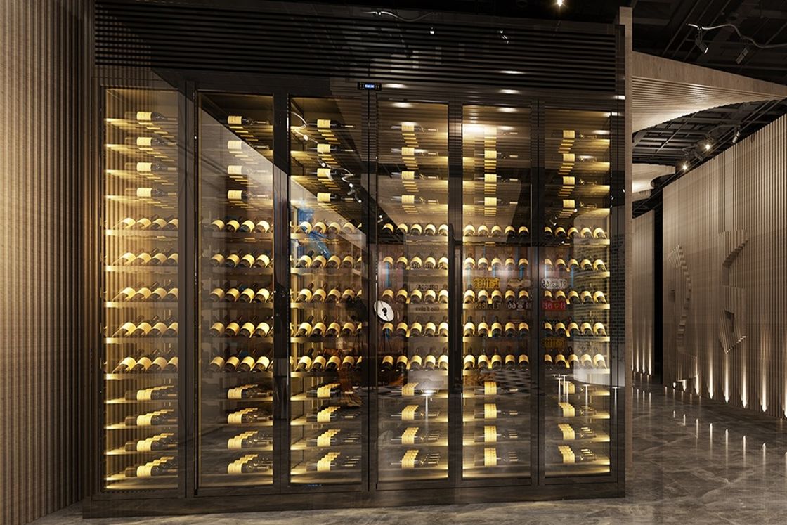 خزانة النبيذ مخصصة الفولاذ المقاوم للصدأ الصلبة يتقوس 7