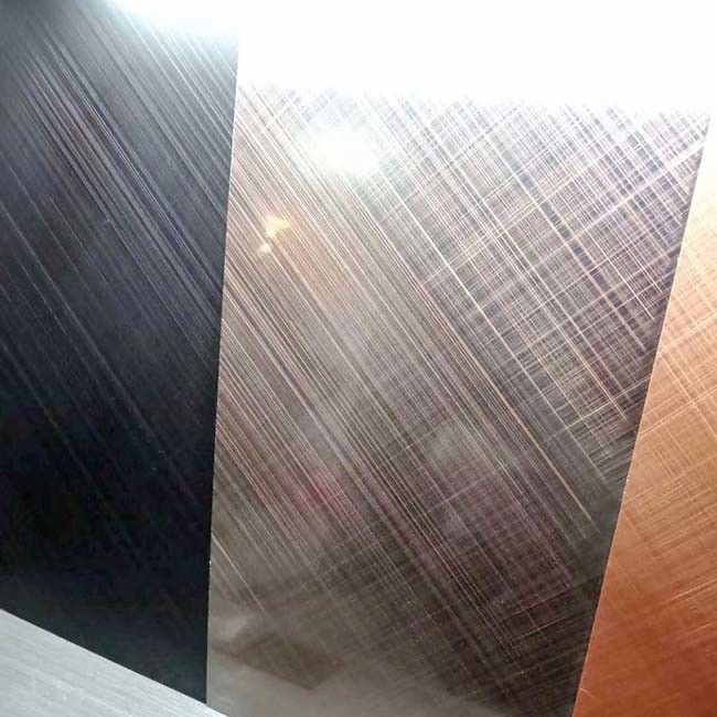 تتوفر ورقة الفولاذ المقاوم للصدأ ذات لون PVD في مجموعة واسعة من الألوان. تطبق هذه العملية طبقة من السيراميك على أساس التيتانيوم والنيتروجين على السطح.تستخدم التغيرات في العملية والسبائك للحصول على مجموعة واسعة من الألوان.