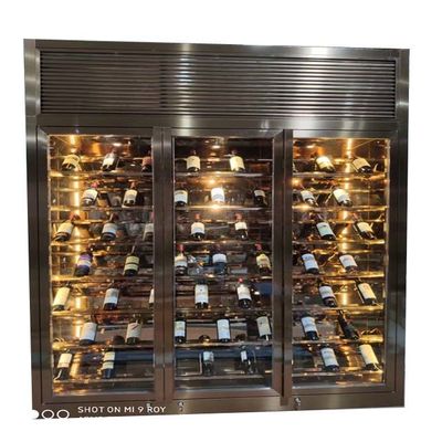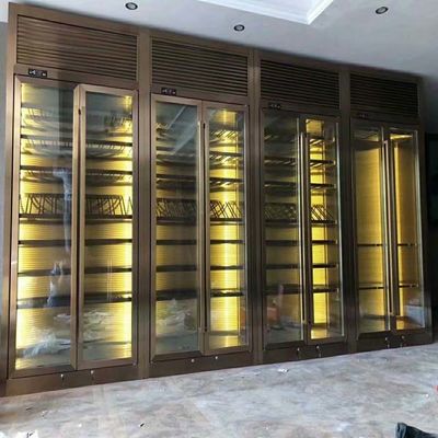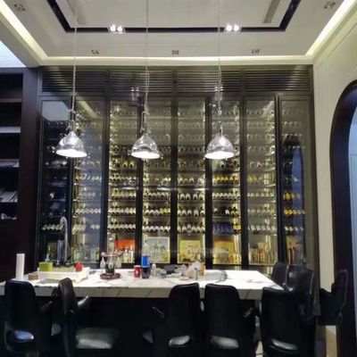 ديكور الفندق إطار معدني أسود الأثاث الزجاج العرض خزانة الفولاذ المقاوم للصدأ صندوق النبيذ