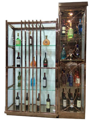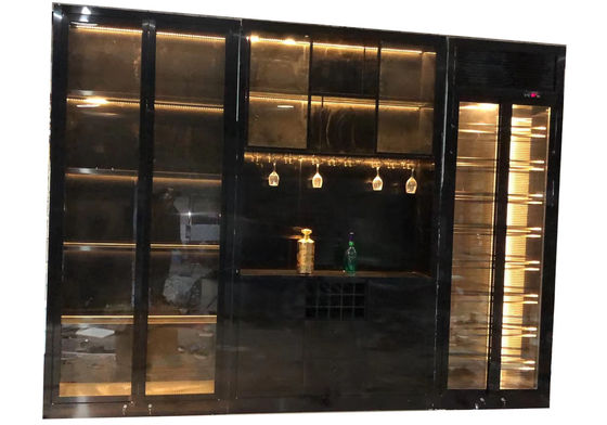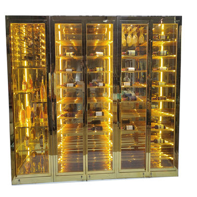 أثاث غرفة الطعام الفاخرة الباب الزجاجي الحديث من الفولاذ المقاوم للصدأ مع شاشة LED رف خزانة النبيذ