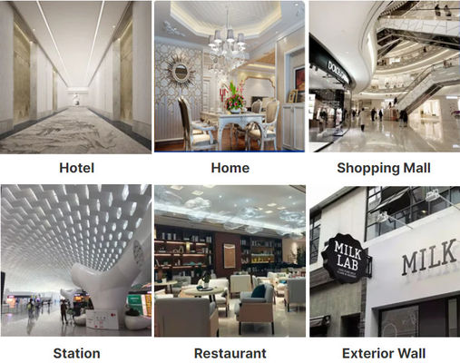 تطبق على نطاق واسع في التصميم المعماري والديكور الداخلي، مثل تزيين المصعد، الأبواب الفاخرة،تزيين الجدران، لوحات الإعلانات، المواد الصحية، تزيين السقف، الممرات، قاعة الفنادق، واجهة المتاجر، الخ