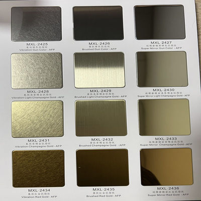 تتوفر ورقة الفولاذ المقاوم للصدأ الملونة PVD في مجموعة واسعة من الألوان. تطبق هذه العملية طبقة من السيراميك على أساس التيتانيوم والنيتروجين على السطح.تستخدم التغيرات في العملية والسبائك للحصول على مجموعة واسعة من الألوان.