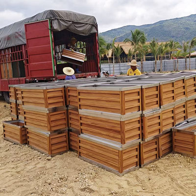 الخشب الحبوب لون حديقة أثاث الشارع المعدنية المستطيلة الكبيرة المزرعة خارجية المياه المعدنية الصندوق النباتية من الفولاذ المقاوم للصدأ وعاء الزهور