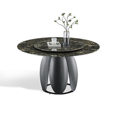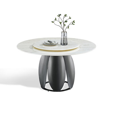 طاولة طعام فاخرة من الفولاذ المقاوم للصدأ مع سطح علوي دوار من الحجر الاصطناعي